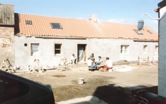 While the house was only partly decorated but habitable the grounds were neglected. The former cattlecourt contained much of a stone floor which was covered with the remains of the roof and a large area of concrete.